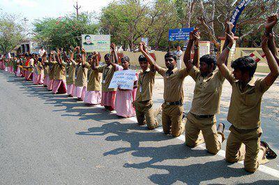 Human chain formation by Students from Tiruvannamalai